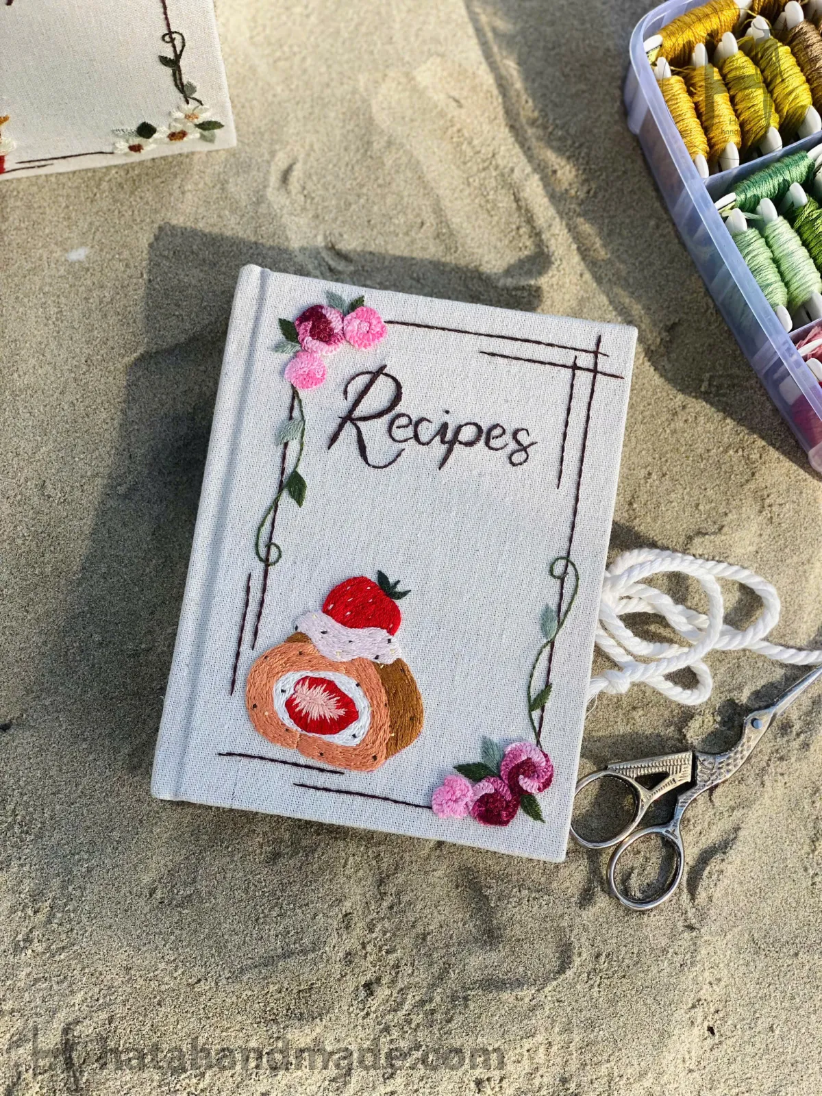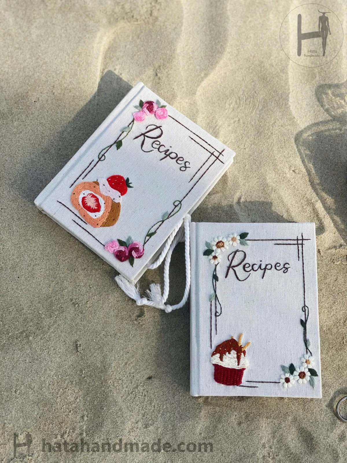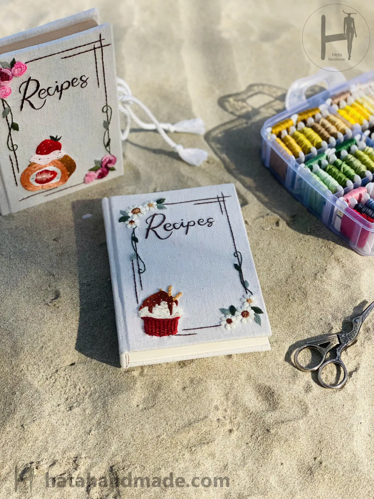 Tên sản phẩm: Sổ Tay Thêu Tay Recipes Hình Bánh Cupcake – Sổ Ghi Chép Công Thức Nấu Ăn Handmade